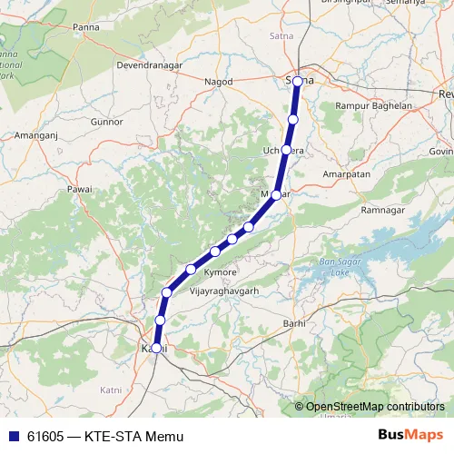The first stop of the 61605 rail route is Katni and the last stop is Satna. 61605 (KTE-STA Memu) is operational during everyday.