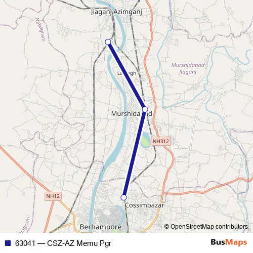 The first stop of the 63041 rail route is Cossimbazar and the last stop is Azimganj Jn. 63041 (CSZ-AZ Memu Pgr) is operational during everyday.