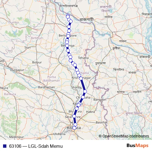 The first stop of the 63106 rail route is Lalgola and the last stop is Sealdah. 63106 (LGL-Sdah Memu) is operational during everyday.