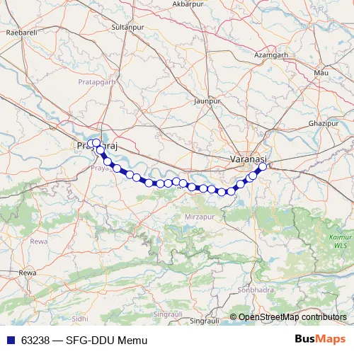 The first stop of the 63238 rail route is Subedarganj and the last stop is Pt.Deen Dayal Upadhyaya Jn.. 63238 (SFG-DDU Memu) is operational during everyday.