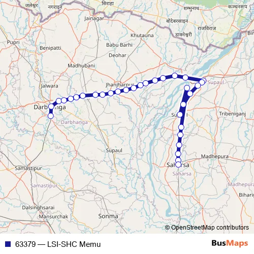 The first stop of the 63379 rail route is Laheria Sarai and the last stop is Saharsa Jn. 63379 (LSI-SHC Memu) is operational during everyday.