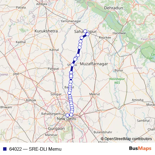 The first stop of the 64022 rail route is Saharanpur Jn. and the last stop is Delhi Jn.. 64022 (SRE-DLI Memu) is operational during everyday.