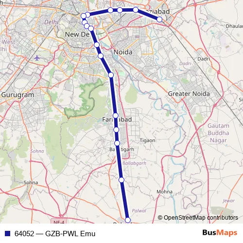 The first stop of the 64052 rail route is Ghaziabad and the last stop is Palwal. 64052 (GZB-PWL Emu) is operational during everyday.
