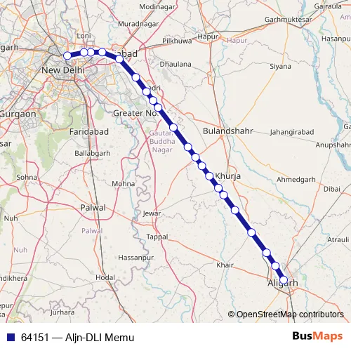 The first stop of the 64151 rail route is Aligarh Jn and the last stop is Delhi Jn.. 64151 (Aljn-DLI Memu) is operational during everyday.