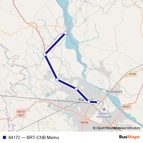 The first stop of the 64172 rail route is Brahmavart and the last stop is Kanpur Central. 64172 (BRT-CNB Memu) is operational during everyday.