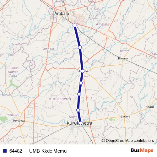 The first stop of the 64482 rail route is Ambala Cant Jn and the last stop is Kurukshetra Jn. 64482 (UMB-Kkde Memu) is operational during everyday.