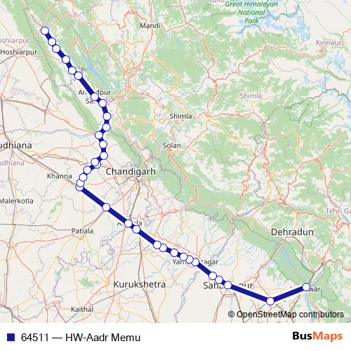 The first stop of the 64511 rail route is Haridwar Jn and the last stop is AMB Andaura. 64511 (HW-Aadr Memu) is operational during everyday.