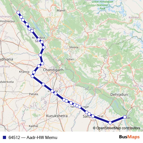 The first stop of the 64512 rail route is AMB Andaura and the last stop is Haridwar Jn. 64512 (Aadr-HW Memu) is operational during everyday.