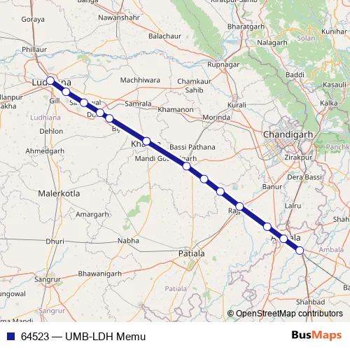 The first stop of the 64523 rail route is Ambala Cant Jn and the last stop is Ludhiana Jn. 64523 (UMB-LDH Memu) is operational during everyday.