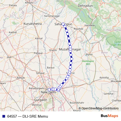 The first stop of the 64557 rail route is Delhi Jn. and the last stop is Saharanpur Jn.. 64557 (DLI-SRE Memu) is operational during everyday.