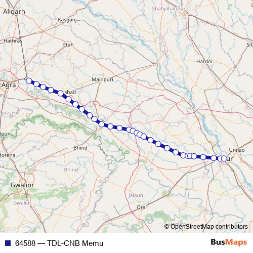 The first stop of the 64588 rail route is Tundla Jn and the last stop is Kanpur Central. 64588 (TDL-CNB Memu) is operational during everyday.