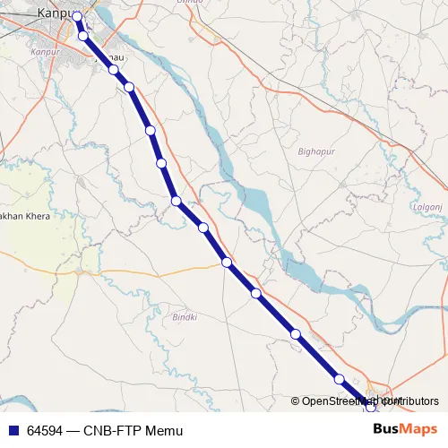 The first stop of the 64594 rail route is Kanpur Central and the last stop is Fatehpur. 64594 (CNB-FTP Memu) is operational during everyday.