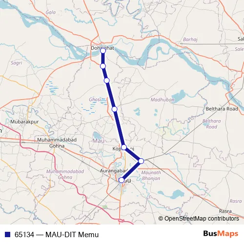 The first stop of the 65134 rail route is MAU Jn and the last stop is Dohrighat. 65134 (MAU-DIT Memu) is operational during everyday.
