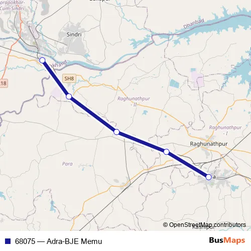 The first stop of the 68075 rail route is Adra and the last stop is Bhojudih Jn.. 68075 (Adra-BJE Memu) is operational during everyday.