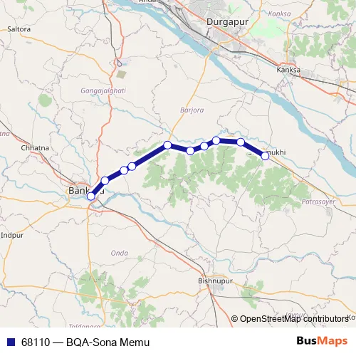 The first stop of the 68110 rail route is Bankura and the last stop is Sonamukhi Ph. 68110 (BQA-Sona Memu) is operational during on weekdays.