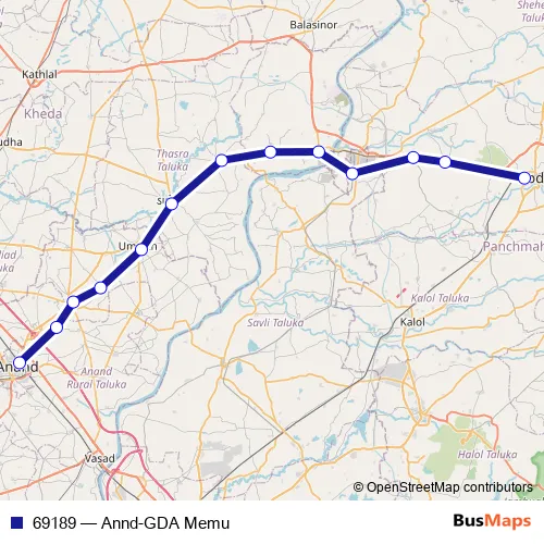 The first stop of the 69189 rail route is Anand Jn and the last stop is Godhra Jn. 69189 (Annd-GDA Memu) is operational during everyday.