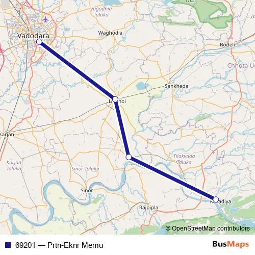The first stop of the 69201 rail route is Pratapnagar and the last stop is Ekta Nagar. 69201 (Prtn-Eknr Memu) is operational during everyday.