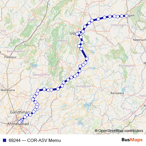The first stop of the 69244 rail route is Chittaurgarh Jn. and the last stop is Asarva Jn. 69244 (COR-ASV Memu) is operational during everyday.
