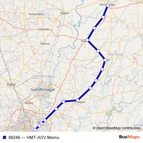 The first stop of the 69246 rail route is Himmatnagar and the last stop is Asarva Jn. 69246 (HMT-ASV Memu) is operational during everyday.