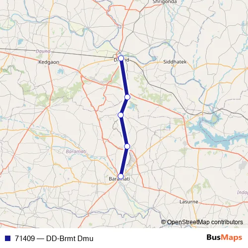 The first stop of the 71409 rail route is Daund Jn and the last stop is Baramati. 71409 (DD-Brmt Dmu) is operational during everyday.