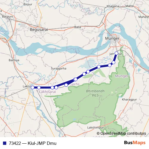 The first stop of the 73422 rail route is Kiul Jn and the last stop is Jamalpur Jn. 73422 (Kiul-JMP Dmu) is operational during everyday.