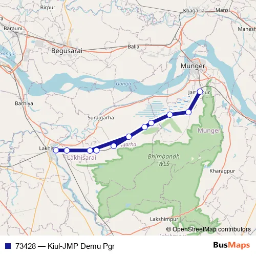 The first stop of the 73428 rail route is Kiul Jn and the last stop is Jamalpur Jn. 73428 (Kiul-JMP Demu Pgr) is operational during everyday.