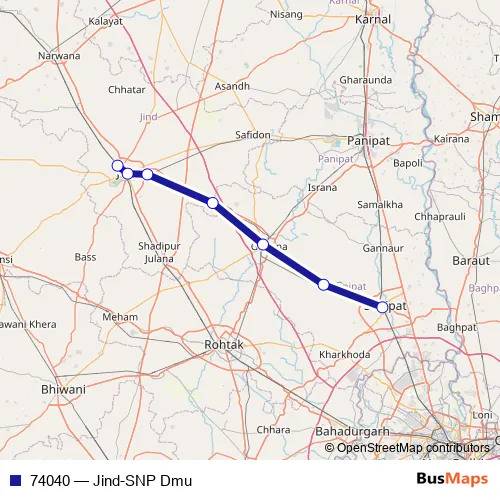 The first stop of the 74040 rail route is Jind Jn and the last stop is Sonipat. 74040 (Jind-SNP Dmu) is operational during everyday.