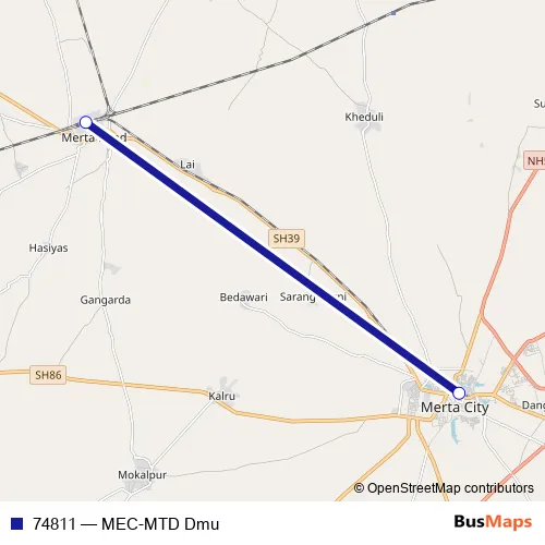 See why over 2 million users trust and consider busmaps.com as the best public transport website. busmaps gives you Merta Rail Services suggested routes, real-time bus tracker, line route maps in Merta, and helps to find the closest 74811 rail stops near you. No internet available? Download an offline PDF map and bus schedule for the 74811 rail to take on your trip.