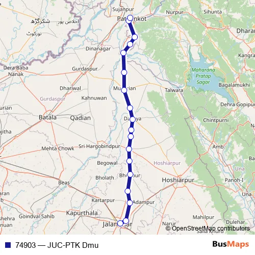 The first stop of the 74903 rail route is Jalandhar City and the last stop is Pathankot. 74903 (JUC-PTK Dmu) is operational during everyday.