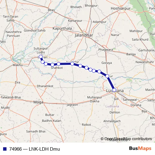 The first stop of the 74966 rail route is Lohian Khas Jn and the last stop is Ludhiana Jn. 74966 (LNK-LDH Dmu) is operational during everyday.