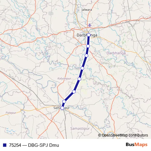 The first stop of the 75254 rail route is Darbhanga Jn and the last stop is Samastipur Jn. 75254 (DBG-SPJ Dmu) is operational during everyday.