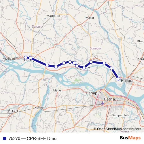 The first stop of the 75270 rail route is Chhapra and the last stop is Sonpur Jn. 75270 (CPR-SEE Dmu) is operational during everyday.