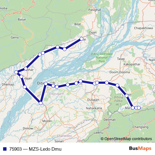 The first stop of the 75903 rail route is Murkeong Selek and the last stop is Ledo. 75903 (MZS-Ledo Dmu) is operational during everyday.