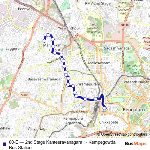 Bus 80-E - 2nd Stage Kanteeravanagara ⇔ Kempegowda Bus Station: Full Schedule in Bengaluru