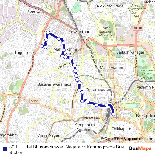 Bus 80-F - Jai Bhuvaneshwari Nagara ⇔ Kempegowda Bus Station Schedule in Bengaluru