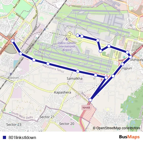 The first stop of the 801linkstldown bus route is IGI Airport Terminal 2 (Air India Office) and the last stop is Dwarka Sec 22 Cluster Depot. 801linkstldown (801linkstldown) is operational during everyday.