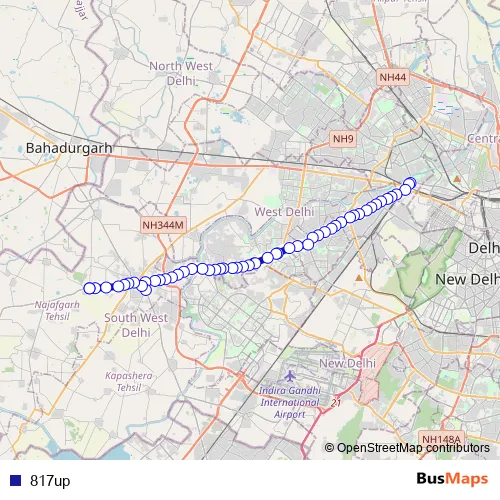 See why over 2 million users trust and consider busmaps.com as the best public transport website. busmaps gives you New Delhi Buses suggested routes, real-time bus tracker, line route maps in New Delhi, and helps to find the closest 817up bus stops near you. No internet available? Download an offline PDF map and bus schedule for the 817up bus to take on your trip.