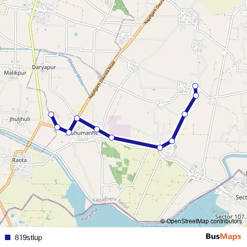 The first stop of the 819stlup bus route is Ghuman Hera Depot 1 and the last stop is Daulat Pur Village. 819stlup is operational during everyday.