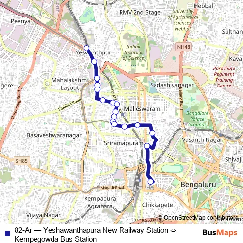 Bus 82-Ar - Yeshawanthapura New Railway Station ⇔ Kempegowda Bus Station: Full Schedule in Bengaluru