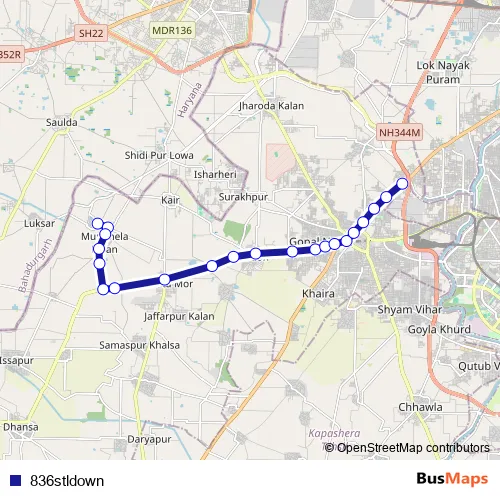 The first stop of the 836stldown bus route is Mundhela Khurd Village and the last stop is Dichau Kalan Depot. 836stldown is operational during everyday.