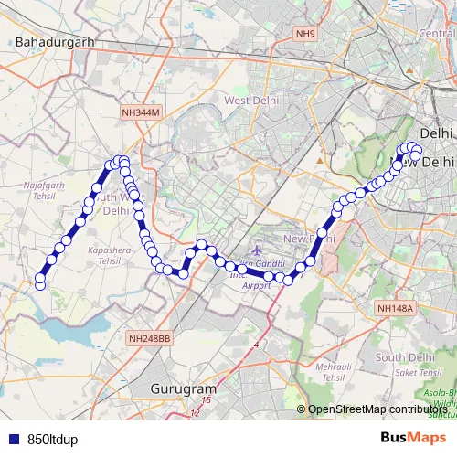 Bus 850ltdup in New Delhi: Stops & Timetable