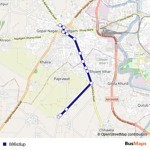 The first stop of the 886stlup bus route is Rewla Khanpur Depot and the last stop is Najafgarh Terminal. 886stlup is operational during everyday.