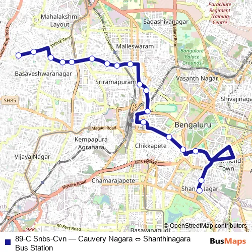 Bus 89-C Snbs-Cvn - Cauvery Nagara ⇔ Shanthinagara Bus Station Schedule in Bengaluru