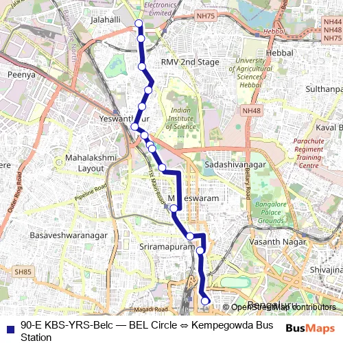 Bus 90-E KBS-YRS-Belc - BEL Circle ⇔ Kempegowda Bus Station: Full Schedule in Bengaluru