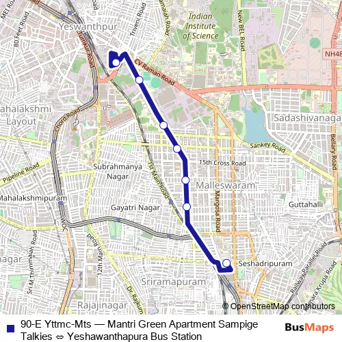 Bus 90-E Yttmc-Mts - Mantri Green Apartment Sampige Talkies ⇔ Yeshawanthapura Bus Station: Full Schedule in Bengaluru