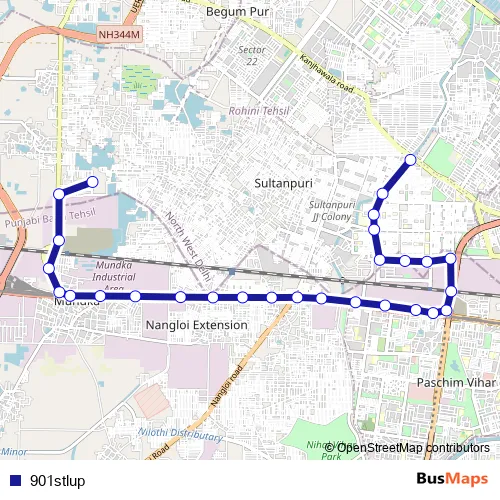 The first stop of the 901stlup bus route is Rani Khera Depot Ii and the last stop is Mangol Puri Y Block. 901stlup is operational during everyday.