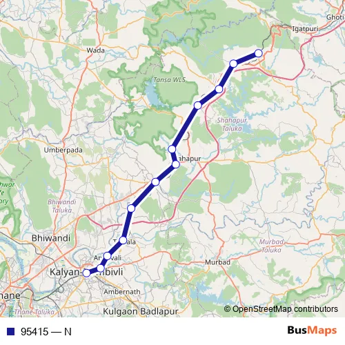The first stop of the 95415 rail route is Kalyan Jn and the last stop is Kasara. 95415 (N) is operational during everyday.