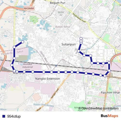 The first stop of the 954stlup bus route is Rani Khera Depot 1 and the last stop is Sultanpuri Terminal. 954stlup is operational during everyday.