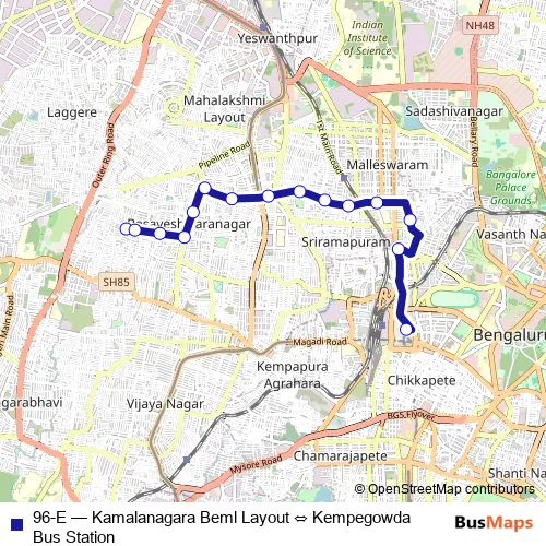 See why over 2 million users trust and consider busmaps.com as the best public transport website. busmaps gives you Bengaluru Buses suggested routes, real-time bus tracker, line route maps in Bengaluru, and helps to find the closest 96-E bus stops near you. No internet available? Download an offline PDF map and bus schedule for the 96-E bus to take on your trip.