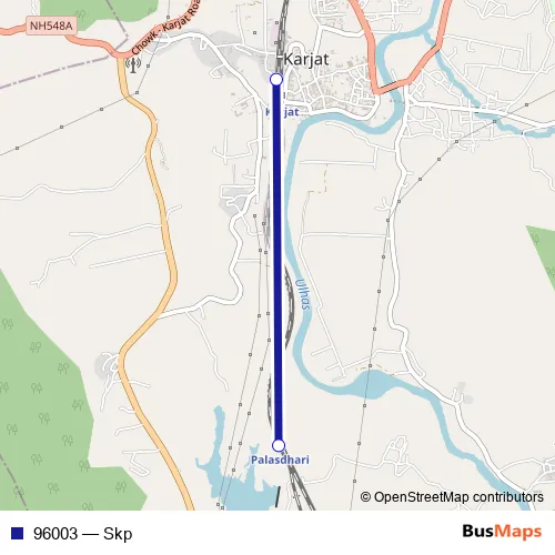 The first stop of the 96003 rail route is Karjat and the last stop is Palasdhari. 96003 (Skp) is operational during everyday.